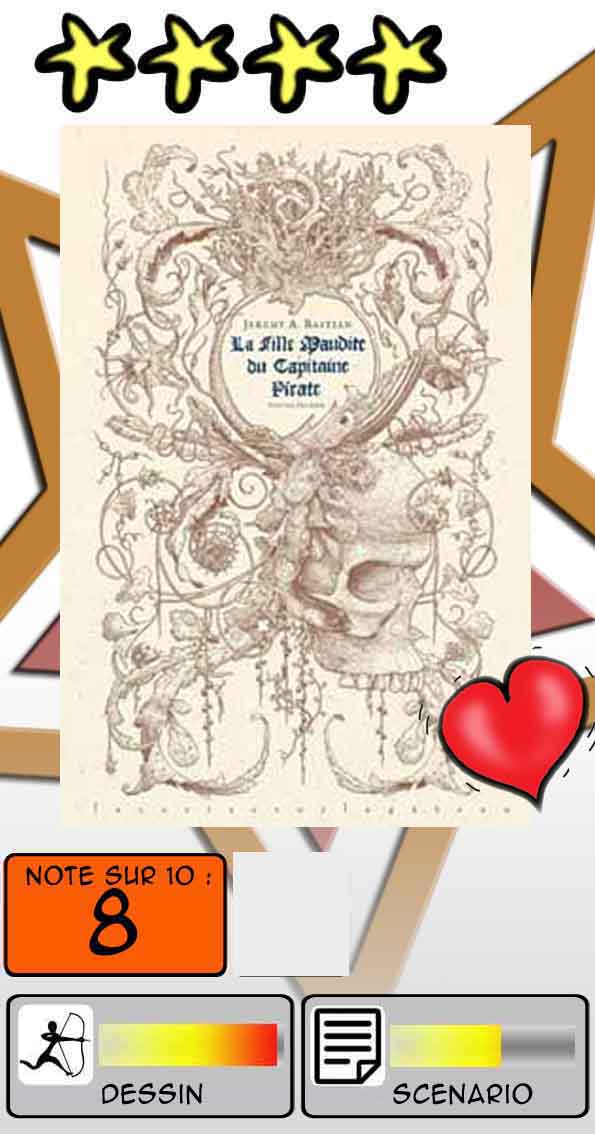 Certes, ce tome 1 pêche un tantinet par son scénario, lequel, à l’image du dessin, est envahi de circonvolutions délirantes (et par moments quelque peu balourdes), mais on en termine la lecture avec ce vague sentiment d’être passé de l’autre côté du miroir, dans un monde aussi mystérieux qu’addictif. Un peu comme la jeune Apollonia, chez qui la rencontre avec la fille du pirate semble avoir déclenché un processus irréversible de métamorphose psychique, sorte d’entrée en rébellion contre l’éducation bourgeoise sous cloche que veut lui imposer son gouverneur de père. Quoiqu’il en soit, une lecture ne suffira pas pour capter l’infinité de détails de ce premier volet, et c’est avec plaisir qu’on s’y replongera avant de découvrir la suite, qui permettra de vérifier si Bastian ne fait qui naviguer à vue ou détient véritablement une idée précise de l’issue de sa course au trésor. De toute façon une très belle découverte qui aura enchanté mon festival cette année.