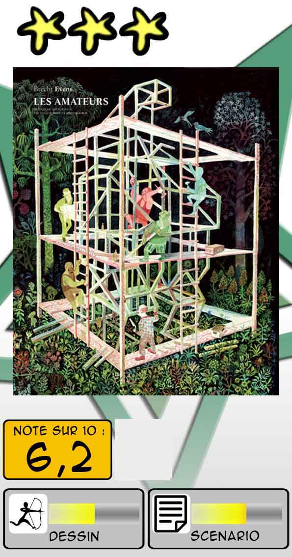 Et puis il y a même une histoire aussi, et même si j’ai un peu pris peur au début, je me suis finalement laissé prendre au jeu. En fait, Brecht Evens nous raconte un projet un peu bancal réunissant une bande de bras cassés qui a priori n’ont rien à voir les uns avec les autres. De cette rencontre improbable va naître une étrange alchimie qui va finir par galvaniser les esprits, avec tous les problèmes d’égo que cela peut engendrer, pour donner au final une œuvre monumentale des plus inattendues… la (jolie) morale de l’histoire étant contenue dans le titre de ma critique…