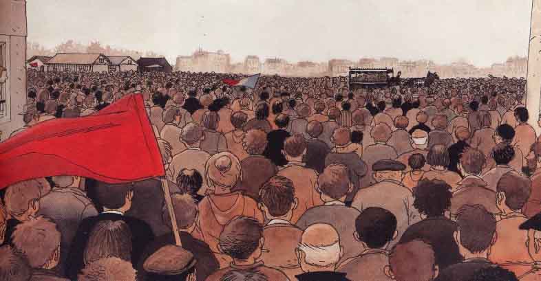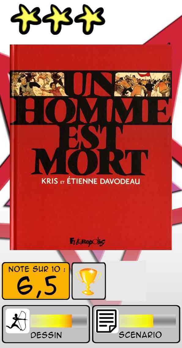 Etienne Davodeau et Kris rendent un bel hommage aux protagonistes de cette lutte, on sent qu’il y a un gros travail de documentation derrière. De son coup de crayon élancé, Davodeau restitue avec sensibilité l’atmosphère et l’état d’esprit de ce mouvement populaire. La mise en couleur est élégante et les teintes rouge–sépia conviennent bien au récit. Et pourtant curieusement, même si je trouve la démarche éminemment sympathique et que j’ai eu du plaisir à lire cet ouvrage, je suis resté sur ma faim. Il manque quelque chose à cette histoire et j’ai du mal à l’expliquer. En fait, je me demande si le format de 63 pages est adapté à une histoire comme celle-ci, d’autant que Kris le scénariste dit avoir travaillé à ce projet pendant quatre ans. Comme si la BD ne se suffisait pas à elle-même, une dizaine de pages de reportages et de témoignages accompagnés de photos succèdent au récit illustré (CQFD ?)…
