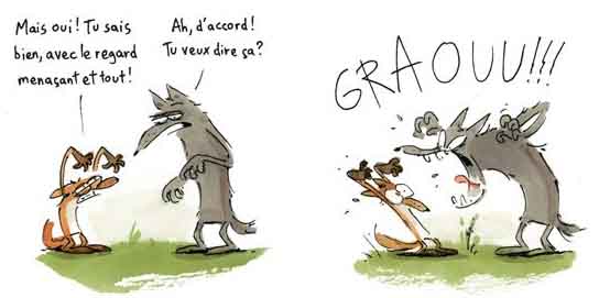 Voici d’après moi l’antidote tout trouvé pour oublier la morosité ambiante, surtout à l’approche des fêtes. Pourtant, de prime abord, on se dit que le dessin, ça fait un peu déjà vu. Et puis des gags avec des animaux qui parlent, c’est pour les enfants, non ? Eh bien une fois dépassés ces aprioris, on pourra vérifier qu’il n’en est rien, et qu’il ne faudra guère de pages avant de sentir son corps – défendant – secoué d’authentiques fous-rires qui dureront jusqu’à la conclusion, en tous cas en ce qui me concerne. Benjamin Renner joue avec bonheur et légèreté sur les problèmes d’identité de ce renard, contraint d’élever des poussins qui le prennent pour sa mère, alors qu’au départ il souhaitait juste les couver puis les engraisser pour les dévorer ensuite. Problème : notre goupil est très sentimental et finit par se résigner à ce rôle de maman improvisée. Comment dans ces conditions se faire respecter comme le prédateur qu’il est censé être vis-à-vis de la gente animale ?