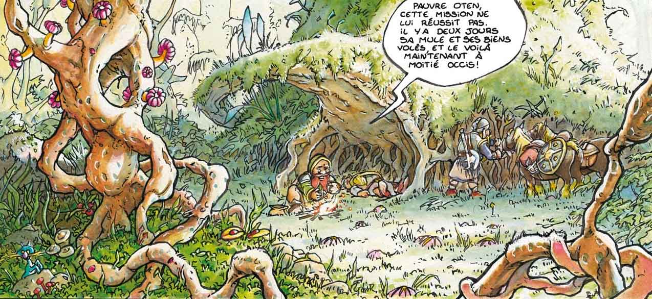 A l’image de cet environnement, les personnages sont extrêmement variés. Tout d’abord, les trois héros, Noren le nain, Firfin le voleur et Morkaï le guerrier barbare (paradoxalement très drôle dans sa brutalité primitive) que le hasard a réuni mais que tout sépare… Puis les « puissances », créatures informes à la limite de l’abstraction, qui évoquent l’univers lovecraftien, notamment Ssîn, la plus cauchemardesque, tout en os et en pointes, qui semble être le cousin d’Alien… Et enfin, toutes les créatures secondaires dignes du genre, guerriers morbelins, nymphettes, araignées géantes, armées de petites bestioles insectoïdes et hargneuses, etc.