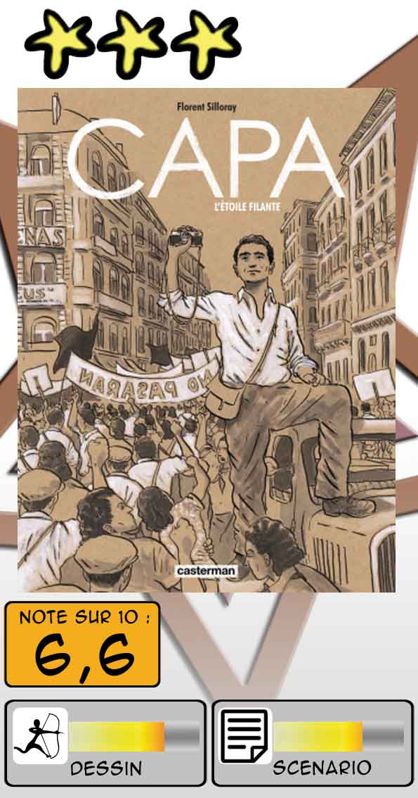 Si Capa – L’Etoile filante constitue un hommage tout à fait décent à celui qui popularisa la photo de reportage, la forme, visant davantage à restituer la réalité, reste toutefois assez sage et ne se distingue pas par une recherche particulière dans la narration ou la mise en page. Le lecteur en quête d’envolées lyriques ou de grandes émotions restera sur sa faim. Mais l’histoire se lit plutôt bien et nous donne l’occasion de découvrir l’homme dont les clichés firent sa renommée, loin de l’image de tête brûlée qui lui colle à la peau, et de revivre quelques grands événements du XXe siècle