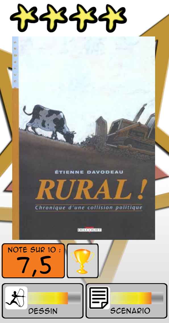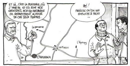 Etienne Davodeau, familier de la BD documentaire, raconte ici l’histoire du projet autoroutier Angers-La Roche-sur-Yon vu depuis un petit coin de campagne, insignifiant aux yeux des promoteurs, un projet absurde impliquant un tracé aux étranges sinuosités dont les causes pourraient bien être liées à la politique locale… C’est l’éternelle fable du progrès qui est décrite, avec deux visions antagonistes qui s’affrontent : la lenteur et la qualité de vie contre la vitesse et les nuisances environnementales. Evitant l’écueil de la culpabilisation du lecteur et en suivant de jeunes paysans tournés vers le bio, Davodeau tente avec subtilité de susciter la réflexion autour d’une problématique : dans quelle société voulons-nous vivre ? Sommes-nous prêts à ce qu’un paysage et ses habitants soient sacrifiés pour nous permettre de gagner dix minutes de temps de trajet ?