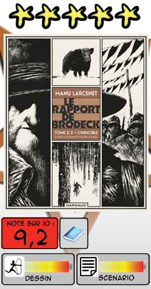 On pouvait se douter que cette seconde partie très attendue du Rapport de Brodeck ne décevrait pas. De plus, non seulement ce tome 2 peut être d’ores et déjà considéré parmi les meilleures bandes dessinées de l’année, mais il propulse le ténébreux diptyque de Manu Larcenet au rang de chef d’œuvre incontournable, et confirme, si besoin était, la légitimité de son auteur au panthéon du neuvième art. Même si la base qui l’a inspiré était solide (un roman de Philippe Claudel, ça n’est pas rien), l’auteur de Blast se l’est totalement appropriée. C’est comme si celui-ci avait spirituellement fusionné avec le romancier, magnifiant le récit de son trait naturaliste fait d’ombres et de lumières. Une lumière qui, dans toute sa crudité quasi clinique, semble là uniquement pour dévoiler la peur, la honte ou la tristesse sur des visages fatigués, pénétrant les âmes pour en révéler toute la noirceur. Un récit qui indubitablement ne laissera pas le lecteur indemne.
