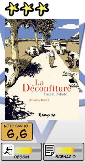 A la fois dessinateur et scénariste (pour les autres ou pour lui-même), l’auteur d’Ibiscus et des Petits ruisseaux fait ici cavalier seul. On suit le personnage de Videgrain, un bidasse français tenant de sauver sa peau au milieu du chaos généralisé, qui voit soldats et civils se croiser sur la route de la débâcle. Les militaires ont pour seule tâche, entre deux parties de cartes, d’enterrer les cadavres victimes des bombardements, sous les braillements d’un supérieur grotesque. Malgré cela, la vie continue, l’ennui s’installe et les hommes finissent par s’habituer à un quotidien où la mort est omniprésente, comme dans un gigantesque pique-nique forcé, miroir macabre des congés payés apparus quelques années plus tôt dans une France qui croyait alors au progrès social. Pascal Rabaté a choisi de traiter son récit sous l’angle de l’humour, avec des scènes où le burlesque amène parfois un peu de légèreté dans ces instants terribles.