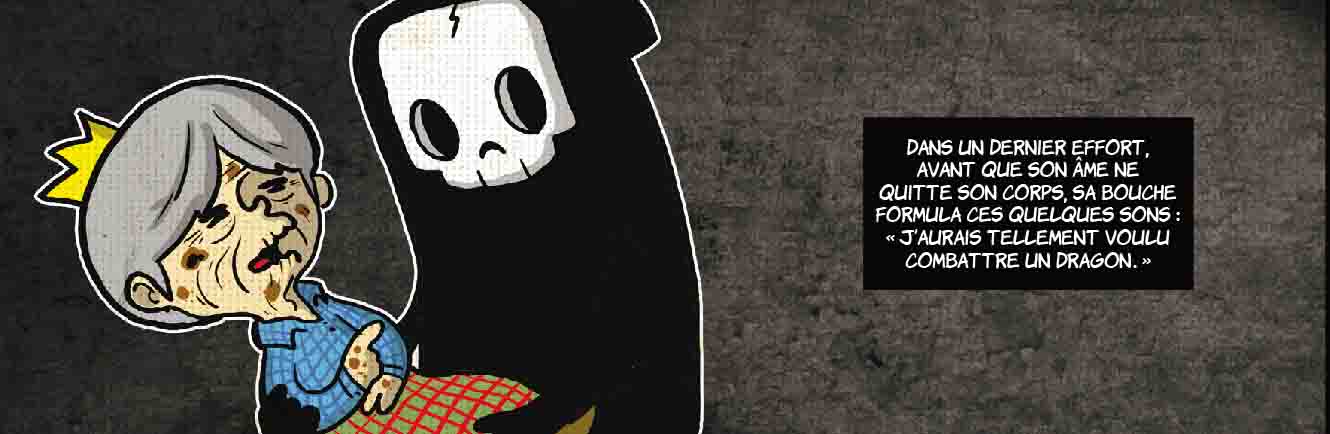 Non seulement l’histoire est décousue, mais elle intègre des éléments « sérieux » voire tragiques, du moins dont il est difficile d’en rire – en l’occurrence la violence conjugale -, mais les gags sont devenus ici comme mécaniques, aucunement drôles, avec des calembours dignes d’une cour de récré. Du coup, il y a des chances pour que le lecteur reste perplexe et se demande si cette excroissance bizarre de La Petite Mort a vraiment été conçue pour faire rire. A moins qu’il ne s’agisse tout simplement d’un suicide éditorial, ce qui à la limite paraîtrait compréhensible vu le thème abordé… La série-mère était caractérisée par un humour déjà très décalé qui pouvait passer pour hermétique aux yeux de certains, mais La Petite Mort(e), elle, opère un nouveau décalage qui rend l’objet… sans objet. Une mortelle déception.