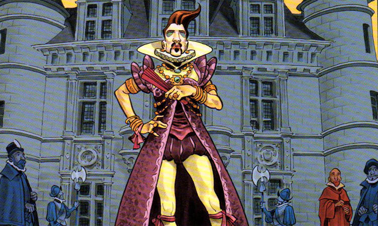 Comme son frère Charles IX, Henri III était un roi haut en couleurs, constituant ainsi un excellent « matériau » pour une bande dessinée. Bien plus détesté que son aîné pourtant à l’origine de la Saint-Barthélemy, notamment par le peuple catholique sous l’emprise de la propagande haineuse de la Ligue, Henri III n’était pourtant pas un roi détestable, tant s’en faut. Ce dernier était un homme doux, humaniste, amoureux des arts et des lettres. Il cherchait à réconcilier les factions rivales durant les guerres de religions qui empoisonnaient la France à cette époque. On lui reprochait également son goût pour les fêtes et ses tenues extravagantes qui le faisaient apparaître très efféminé. Ce qui évidemment faisait de lui une cible très facile pour ses ennemis, dans une période où l’homosexualité constituait un blasphème, deux siècles seulement après l’Inquisition.