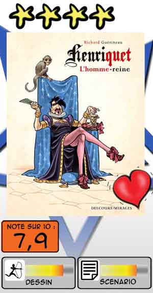 Même si Henriquet, l’homme-reine ne recèle pas la force de son prédécesseur, il reste d’excellente tenue, avec une narration fluide, de l’humour et des textes de qualité, notamment par la truculence des jurons de l’époque proférés par les bouches les plus nobles, y compris celle de Henri III… C’est donc un portrait brillant et équilibré qu’a dressé Richard Guérineau de ce souverain, lequel apparaît au final plutôt attachant, tant par sa majestueuse extravagance que par ses failles, lui qui se disait né au mauvais siècle. Gageons que ce deuxième volume, réussite incontestable, rencontre autant de succès que Charly 9, de sorte à encourager l’auteur à nous narrer la vie d’un autre souverain !