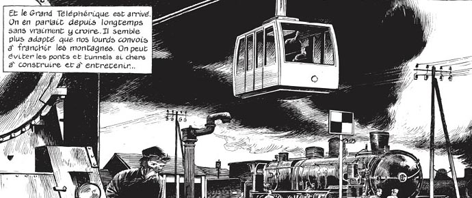C’est vrai qu’elle était belle cette locomotive, avec ses lignes rétro-futuristes inspirées du style art déco. Pas étonnant que le passionné d’architecture qu’est François Schuiten ait voulu lui rendre cet hommage. Le dessinateur a recouru pour ce one-shot aux hachures à la plume et en noir et blanc, technique avec laquelle il excelle.