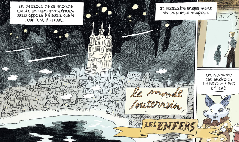La narration est pour le moins enlevée, avec quelques scènes – heureusement non prédominantes – de combat façon « ninja », un des aspects les plus agaçants du manga. Cela reste néanmoins supportable car dilué dans la narration en question et l’univers graphique évoqué plus haut. Quant aux personnages, ils sont plutôt bien campés malgré l’hyper-stylisation des visages. A travers la jeune héroïne Perséphone et sa quête vers elle-même est abordée en filigrane la question de la filiation, l’adolescente étant la fille adoptive de Déméter. Les autres thèmes abordés concernent la corruption du pouvoir et le partage des richesses, un sujet hautement actuel de notre monde réel. La Porte des Enfers, bloquant l’accès entre Eleusis et le monde souterrain, symbolise parfaitement les nouveaux « murs » se dressant entre un Occident riche et un « Sud » en proie à la misère et à la guerre. En avançant dans l’histoire, on réalise que les habitants de ces enfers n’ont rien de diabolique, bien au contraire…
