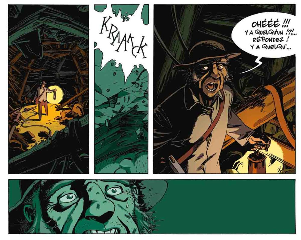Si vous aimez être surpris, cette bande dessinée ne devrait pas vous décevoir. Bien sûr, si la couverture fait un peu office de teaser, le double-genre qui la caractérise laisse une impression pour le moins marquante. L’histoire commence en effet comme un drame social réaliste bien français, avec en toile de fond la grogne des mineurs qui voient d’un mauvais œil la mécanisation des moyens de production, pour bifurquer au bout de quelques pages vers le récit d’aventure fantastique, comme un clin d’œil aux comic books évoqués un peu plus tôt par un des mineurs.