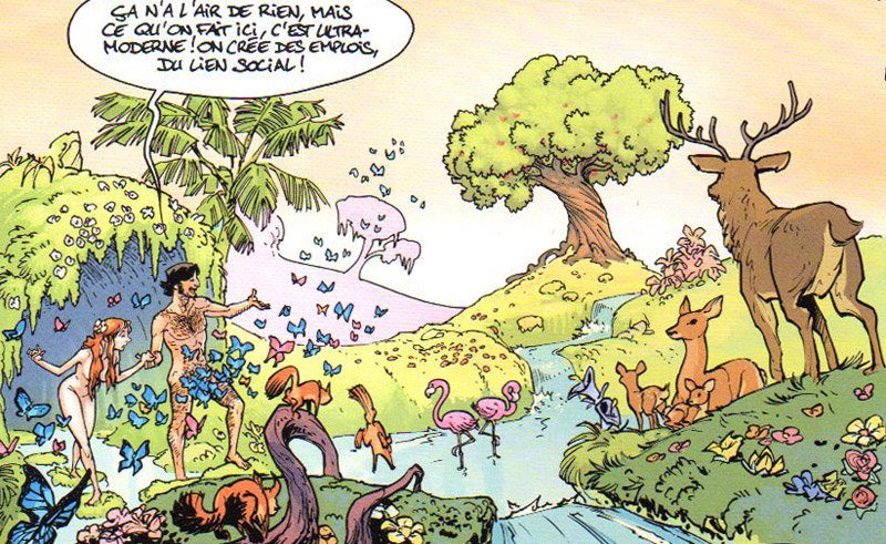 Malgré son passé de syndicaliste, Antoine apparaît ici comme la voix discordante, car il se réjouit curieusement du projet pharaonique de Garan-Servier, arguant que cela créerait des emplois dans la région et pestant contre ces « rastaquouères » de zadistes. Un prétexte des auteurs pour ne pas faire ressembler leurs « Vieux Fourneaux » à un porte voix de l’extrême-gauche tendance écolo ? A moins que cela ne soit qu’un simple parti pris objectif permettant de prendre en compte toutes les opinions… car en fin de compte, Antoine est un naïf qui reste attachant, convaincu comme beaucoup d’autres pourraient l’être, par le discours démagogique d’une entreprise cynique. Et les faits lui donneront bien évidemment tort…