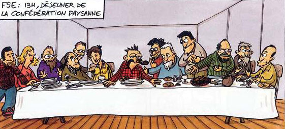 C’est pourtant assez drôle, caustique souvent, les patrons comme les écolos en prennent pour leur grade, les thèmes sont plus ou moins d’actualité (plus du tout pour le clonage raélien !) et il y a quelques trouvailles (notamment le passage où apparaît au Forum social européen un Michael Moore égaré et hagard, obsédé par la bouffe, et puis ce clébard nommé Attac qui a du mal à s’y retrouver quand on lui dit « Couché, Attac !« , hilarant !…)… En somme il y a du potentiel, mais cela reste de l’ordre de l’anecdotique.