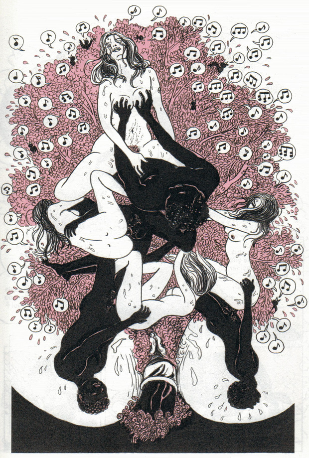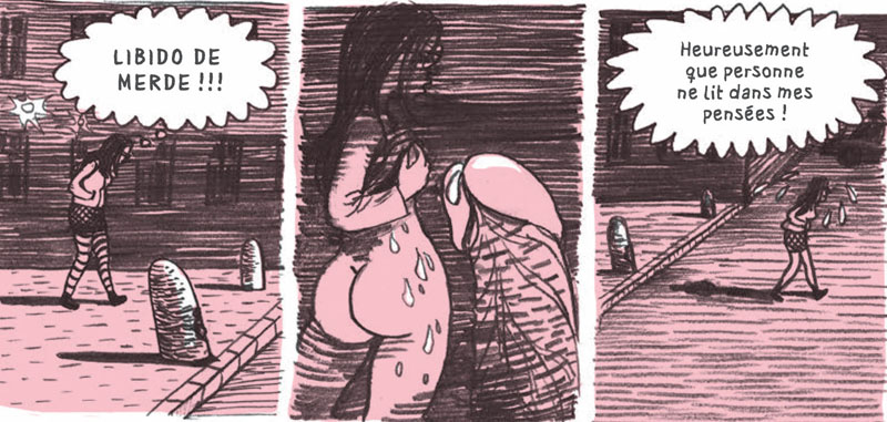 J’ignore si « Lust » est un pseudo. Si ce n’est pas le cas, cela tendrait à accréditer l’idée qu’un patronyme pèse sur la destinée de celui qui le porte. Car de plaisir sexuel il est beaucoup question dans cette autobiographie honnête et courageuse. Son dessin explicite ne cherche pas à nous faire rincer l’œil, il présente l’acte sexuel comme une chose belle et naturelle. Ulli Lust est une féministe de son temps, qui ne revendique rien mais vit sa vie juste comme elle l’entend, en explorant son désir sexuel sans hypocrisie, sans peur du qu’en-dira-t-on. Et le moins qu’on puisse dire, c’est que ça ne plait pas toujours. Non seulement à ses voisins-voisines, que l’hédonisme d’Ulli renvoie à leurs propres frustrations, mais surtout, et là on est au cœur du sujet, à son amant africain Kimata. Au départ dépeint comme un homme gentil, celui-ci va révéler au fur et à mesure sa jalousie maladive jusqu’à son paroxysme de haine et de violence, qui ne laissera pas sa partenaire indemne. Malgré cela, Ulli parvient à éviter l’écueil d’un racisme trop facile, évitant tout jugement de valeur sur la tradition africaine, caractérisée par un paternalisme déroutant pour l’Occidental lambda. L’auteure au contraire se contente d’être factuelle, mettant en lumière les préjugés et la bêtise de Kim (« tu fais partie de ces femmes blanches qui aiment les hommes noirs ? »), malgré ses tentatives pour être tolérant. Cela corrobore d’une certaine façon l’idée que le racisme peut être aussi le fait de ceux qui en sont les premières victimes, a fortiori dans un pays comme l’Autriche – où se déroule l’histoire -, un pays où l’extrême-droite a eu à plusieurs reprises l’accès au pouvoir. D’ailleurs, comme pour éviter la récupération politique, Ulli Lust n’oublie pas de faire allusion à certains comportements machistes et xénophobes dans son pays.