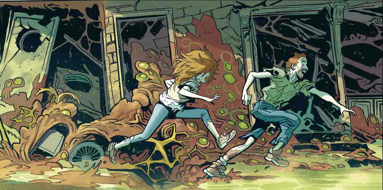 Ce premier épisode, qui démarre sur des chapeaux de roue, met vite dans l’ambiance, même si on ne comprend pas d’emblée qui sont et ce que font les différents protagonistes. Pourtant, tout va se mettre assez vite en place dès les premières pages, et c’est bien là que réside le talent narratif de l’auteur américain qui par ailleurs ne néglige jamais l’aspect psychologique de ses personnages – même si à ce stade, il est un peu tôt pour s’y attacher. Avec ses créatures difformes et dépourvues d’yeux, Robert Kirkman cherche visiblement à renouer avec le côté horrifique qui caractérise Walking Dead. Mais là où la série à zombies possédait ce côté « crédible », plus terre-à-terre, ce nouveau récit peine à véritablement convaincre, restant tout au plus intrigant. Cette dimension parallèle, sorte d’organisme géant qui a comme absorbé une partie de la ville de Philadelphie, confère au scénario une tonalité SF qui cadre mal avec le contexte contemporain, tout comme l’invention utilisée par le héros Nathan Cole pour conduire sa mission, des balles « téléportantes » destinées à ramener les gens dans le monde « réel ».