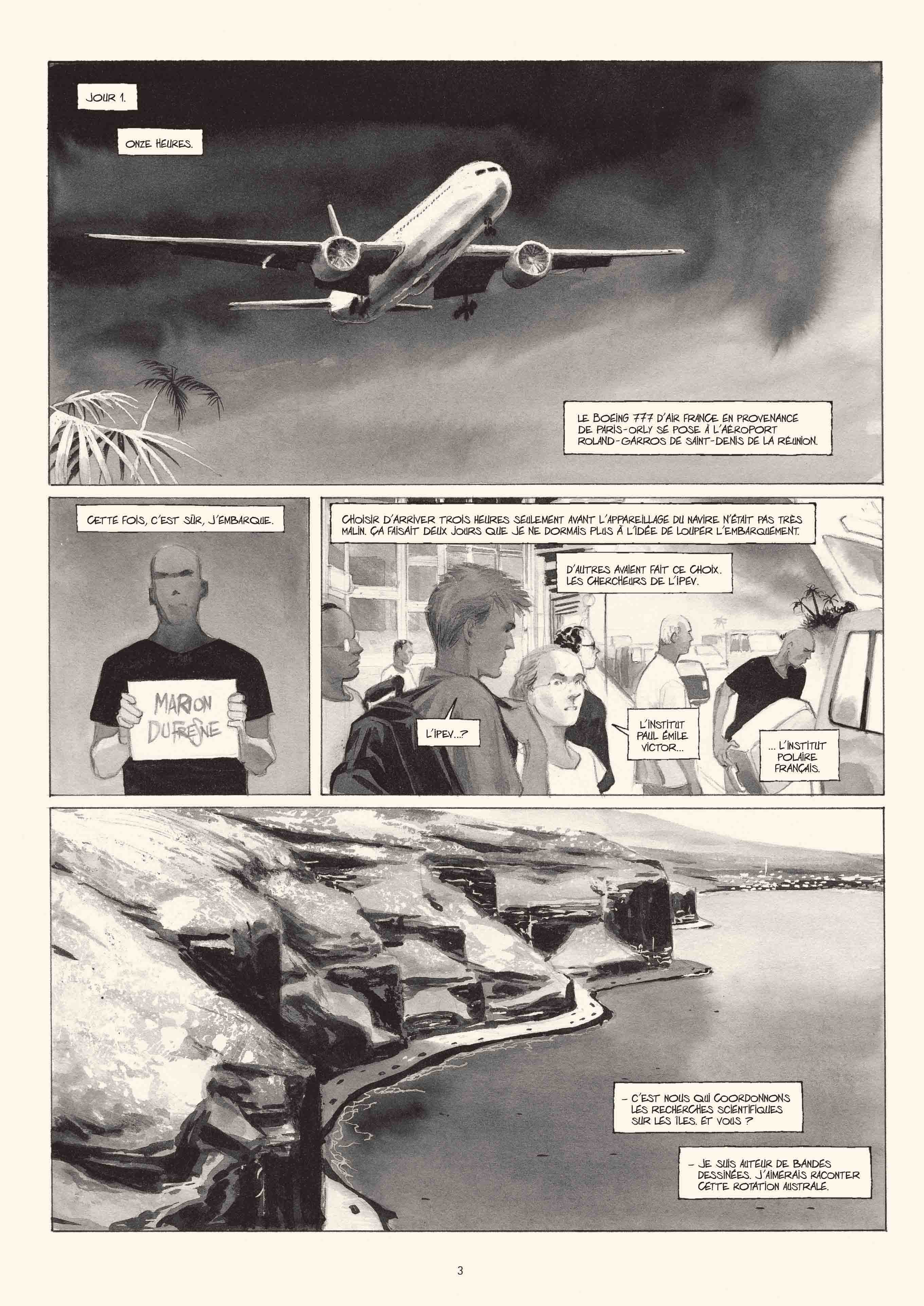En 2010, Emmanuel Lepage a réalisé un rêve d’enfant en embarquant avec ses planches et ses crayons à bord du Marion Dufresne, un navire de ravitaillement reliant les bases scientifiques des TAAF (Terres australes et antarctiques françaises). Il en est revenu avec cette BD documentaire afin de nous faire partager son périple hors du commun à travers un océan rugissant et des îles pour la plupart inhospitalières, mais où s’accrochent fermement tous les rêves et mythes d’une autre époque liés à l’exploration et à la conquête des étendues sauvages.