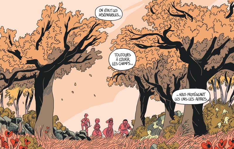 « Je n’avais pas senti sa présence. Il était devant moi, immobile. Ce fut notre première rencontre. Il y en aurait d’autres. L’homme en noir. J’aurais dû le prendre comme un mauvais présage. Le révérend nous avait prévenues : l’homme en noir, c’est le diable. Il ne faut pas tomber dans ses pièges. Il était pourtant très beau. Il semblait dans son élément. Je n’arrivais pas à me méfier. Soudainement j’eus très chaud. J’ai eu des fourmis dans le ventre. Ça doit être parce qu’il me regardait intensément. Puis, il a fait un geste. En un instant, il disparut dans les taillis.