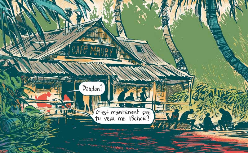 Avec un scénario extrêmement bien charpenté, des personnages également très bien campés, P.-H. Gomont réussit à nous embarquer totalement dans cette « aventure » au parfum d’exotisme, en majeure partie grâce à ce personnage haut en couleurs qu’est Gabriel Lesaffre et qui constitue la force gravitationnelle du récit, omniprésent même dans les scènes où il est absent. Tout détestable soit-il, l’homme exerce une fascination puissante sur son entourage, sans que l’on puisse vraiment l’expliquer. En premier lieu, ses deux aînés, arrachés à leur mère suite à une action en justice du père pour obtenir leur garde, alors que ce dernier, aimant l’argent et la vie facile, a rarement été présent dans le passé. La mère restera seule à Paris avec le plus jeune enfant, les aînés Mathilde et Simon suivant leur père sans broncher vers cette destination exotique, l’Afrique équatoriale, dont ils ne connaissent rien. Une fois sur place, ils découvriront en pleine jungle le vaste domaine que Gabriel a racheté suite à la faillite des illustres aïeux dans les années 1920 : une imposante demeure coloniale, une serre monumentale ainsi qu’une scierie. Gabriel s’est mis en tête de restaurer et entretenir le patrimoine familial pour le léguer plus tard à ses enfants, dont il exige en retour qu’ils en soient les dignes héritiers. Dans les premiers temps, ceux-ci seront vite envoûtés par la beauté des lieux et l’environnement luxuriant. Une nouvelle liberté va s’offrir à eux dans cet endroit paradisiaque, contrastant fortement avec la grisaille parisienne. Très vite, ils seront contraints par leur père de suivre leurs études dans le lycée français d’une ville côtière. Plus ou moins livrés à eux-mêmes, ces adolescents s’endurciront au contact de leurs nouveaux amis, et feront malgré eux l’apprentissage de la vie, sans parents, préférant leur nouvelle vie à un retour à Paris, même s’ils finissent par honnir ce père caractériel. Absent comme à son habitude, Gabriel ne les verra plus qu’occasionnellement. En effet, obsédé par son projet, il dirige de façon chaotique le domaine, en jouant plus sur l’esbroufe qui lui a d’ailleurs permis de s’enrichir que grâce à ses compétences de gestionnaire, plus que limitées. Et d’avance, on pressent que tout cela est voué à l’échec…