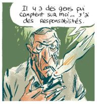 Il faut ajouter à tout cela la plaisante tournure littéraire des textes, qui contribue à ériger Malaterre comme une référence parmi tout ce que le roman graphique a produit de meilleur. D’ailleurs, le talent narratif dont fait preuve Gomont n’est pas sans rappeler le maître dans sa catégorie, j’ai nommé Will Eisner… L’émotion n’est pas absente, en particulier vers la fin, et celle-ci est d’autant plus puissante qu’elle reste sobre, sans pathos. Car au final, le personnage de Gabriel révèle un côté attachant avec sa folie et ses paradoxes, une fragilité qu’il masque bien souvent derrière sa colère. Ses enfants, dans leur détestation commune, réalisent qu’au fond ils l’aimaient ce père que l’on voit mourir au début de ce récit en forme de flashback. Un père hors du commun qui suivait ses instincts envers et contre tout, en lutte contre tout le monde mais aussi contre lui-même.