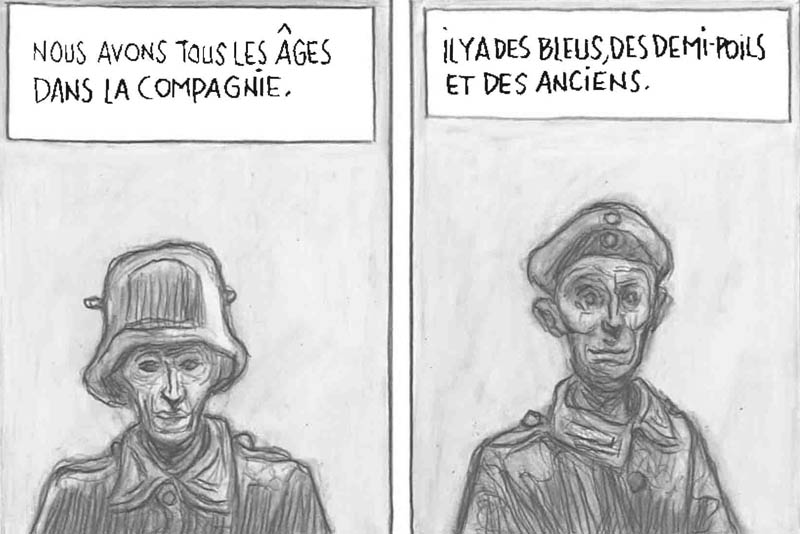 Au milieu de cette boue, deux camps qui s’affrontent : les Français et les Allemands. Alors que le roman original est vu sous l’angle du camp français, Patrick Pécherot a choisi d’inverser la perspective. Un parti pris pertinent – et qui fait tout l’intérêt du projet – pour montrer que cette guerre était vécue exactement de la même façon des deux côtés des tranchées. Ici, les soldats ont les mêmes visages émaciés et affolés que ne pouvaient l’avoir leurs adversaires. Comme leurs voisins « Franzosen », ils étaient des « grains de poussière roulés dans la grande plaine de la guerre. ». Comme eux, ils venaient de partout, de toutes les classes laborieuses et n’avaient d’autres choix que de participer à cette guerre, dont ils pensaient pareillement qu’elle serait de courte durée, loin de se douter que cette « promenade de santé » se transformerait en boucherie dévastatrice. Car il est vrai que l’on connaît peu de récits du point de vue allemand de ce côté-ci du Rhin. Longtemps après la guerre, l’Allemand était resté le Boche, le Fritz, le fridolin fauteur de troubles qui devait payer…