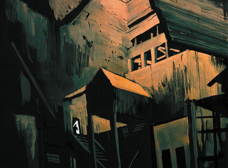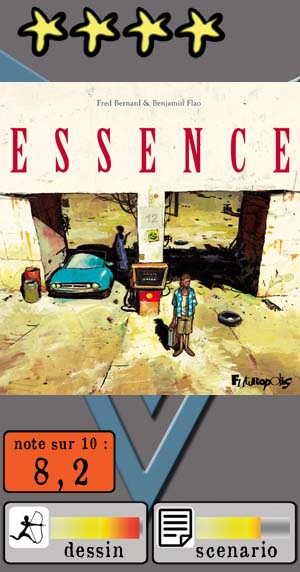 Sept ans après son chef d’œuvre Kililana Song, Benjamin Flao nous revient avec une « vraie » BD, Essence. Autant dire qu’il était attendu au tournant… Et on peut l’affirmer sans faux-semblants, c’est un retour réussi, malgré une fin un peu décevante ! D’emblée, nous sommes plongés dans un univers très singulier, qui sous le pinceau de Flao, atteint une dimension grandiose. Le décor : un mélange perturbant de réalisme burlesque et d’onirisme exubérant, juste fascinant à regarder.