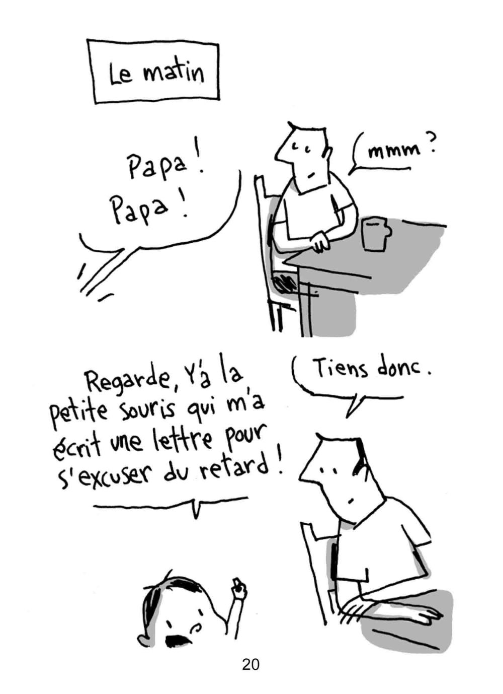 Aujourd’hui, il n’est pas facile d’être papa, surtout quand on a soi-même gardé son âme d’enfant. Les enfants posent beaucoup de questions, et pour eux, papa sait tout, papa a réponse à tout. Il est donc important de peser ses paroles, et surtout d’éviter les mauvaises blagues et le second degré. En effet, les enfants, s’ils prennent tout à la lettre et accordent facilement leur confiance, devinent bien quand on les mène en bateau, et là, il n’y a pas d’échappatoire possible pour l’adulte qui se croit trop malin. En bon « père indigne », Guy Delisle en fait ici son propre témoignage.