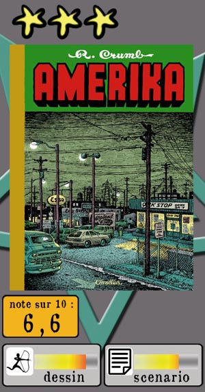 e Crumb, je ne connaissais que quelques planches piochées au hasard en librairie ou ailleurs, ainsi que le côté subversif du personnage, extravagant et éternel râleur, et sa passion pour les filles pulpeuses à gros mollets. Décidé à combler ce manque à ma culture générale, j’ai choisi cet album dont le titre résume bien l’état esprit, avec ce K explicite à la place du C du mot « America ». J’ignore si c’était le meilleur choix, mais il est sûr que ce mec a un vrai talent pour aborder la politique et les sujets « sérieux » en utilisant tous les codes ludiques des cartoons américains, en plus trash – dessin caoutchouteux, personnages à gros nez et sens du burlesque – qui viennent ainsi contrebalancer l’aspérité et la véhémence du propos. Du moins pour la première période allant jusqu’au début des années 80, car à la fin de la même décennie, le dessin noir et blanc semble avoir pris imperceptiblement une tournure plus réaliste, plus sombre (avec plus de hachures dans le trait), car en effet, la colère et la désillusion n’’ont pas faibli avec le temps chez ce rebelle pour qui le rêve américain a tourné au cauchemar.
