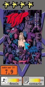 Si l’ouvrage se lit évidemment vite, dans quelques cas – rares heureusement -, on peut avoir du mal à percuter avec certaines scènes. Mais l’ensemble est tellement bizarre, car c’est aussi ça qui est bon, que l’on en oublie ces petits défauts, et l’on pourra bien faire montre d’indulgence étant donné la difficulté du challenge consistant à produire une histoire sans paroles. Trap, c’est du primal délesté des blablas. Trap, c’est le retour à la vie sauvage, l’appropriation de l’instinct animal doublée de lycanthropie, la pure bagarre pour la survie, la grisante adrénaline, l’odeur dangereusement enivrante du sang, le catch frénétique jusqu’à la giclure finale de la sève vitale adverse, mais aussi la sensation voluptueuse des peaux de bête sur nos corps nus et larvaires. Trap, c’est tout cela avec un doigt de chamanisme et c’est follement bon…