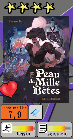 Présenté dans une très belle édition à la couverture veloutée, mettant en éveil nos sens tactiles – un parti pris assez logique puisqu’il est largement question ici d’enveloppe charnelle -, Peau de Mille Bêtes brille d’un éclat à la fois sombre et lumineux, remettant avec brio un conte d’antan au goût du jour. De la fort belle ouvrage, et à n’en pas douter, l’un des plus beaux albums de l’année.