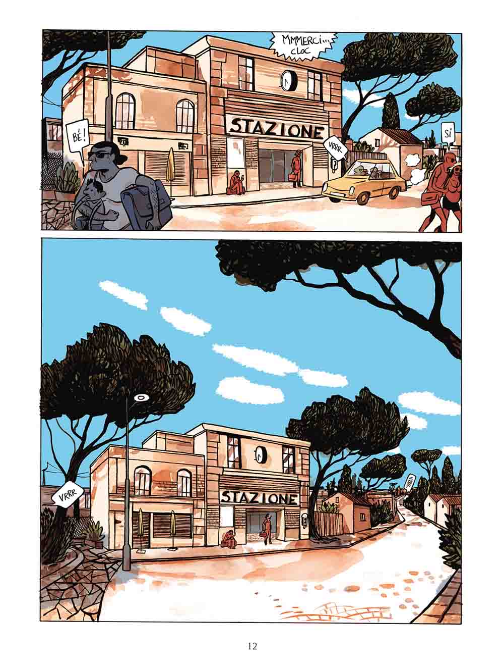 On ne peut s’empêcher de penser à Come Prima à la lecture de ce nouvel opus d’Alfred, le premier point commun étant évidemment l’Italie. Mais là où le premier était un road-novel, le second reste limité géographiquement à un seul lieu, le voyage ayant plus à voir avec l’onirisme… De même, l’auteur s’est une nouvelle fois occupé de la narration, ce qui lui avait très bien réussi en 2014 puisqu’il avait décroché le Fauve d’or à Angoulême pour sa ballade italienne…