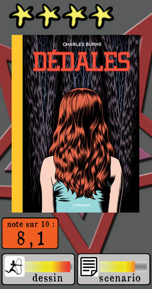 N’imaginez pas Charles Burns va vous donner les explications pour une lecture accessible du récit, ce serait mal le connaître ! Américain sur la forme mais européen sur le fond, l’auteur se contente de distiller au fil des pages de rares indices, qui ne font qu’amener de nouvelles interrogations. Un cauchemar horripilant pour le lecteur avide de réponses prémâchées… et pour les autres, forcément subjugués, non seulement par l’histoire mais par ce trait toujours aussi envoûtant et ces magnifiques ombres et lumières, si caractéristiques, surnage un seul désir : s’enfoncer plus profondément dans ces Dédales. Vivement la suite…