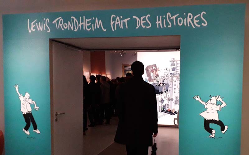 Etant donné mon timing un peu serré, la plupart des expositions ont été menées au pas de charge, surtout dans les derniers moments où j’ai pu en voir quatre en à peine plus d’une heure ! Toutes étaient dignes d’intérêt, la plus vaste étant celle consacrée à Lewis Trondheim, ce modeste qui affirme en avoir accepté le principe uniquement parce que Thierry Groensteen le lui avait demandé. L’originalité de cette expo est que les murs ont été recouverts de nombreux graffitis de Trondheim, bon nombre étant des réflexions amusantes en forme de coups de gueule bien sentis, une façon pour cet auteur prolixe de prendre part à la révolte en cours dans le métier. De même, les expos sur Pierre Christin et Catherine Meurisse étaient plutôt consistantes, bénéficiant d’une belle scénographie. Quant à la rétrospective sur Calvo, je l’avais trouvée un peu maigre, mais après vérification, j’ai peut-être dû louper deux salles, la raison étant probablement le rythme d’enfer de mes pérégrinations artistiques de fin de séjour, ce qui peut paraître stupide j’en conviens…