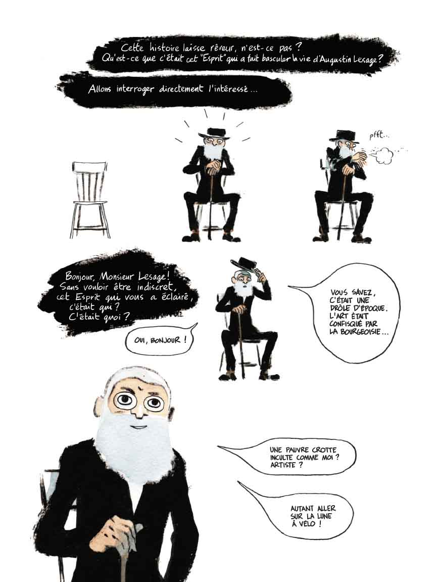 Extrait p.18-19 – Auguste Lesage, mineur de profession, décida se mettre à la peinture, « inspiré par un esprit » :