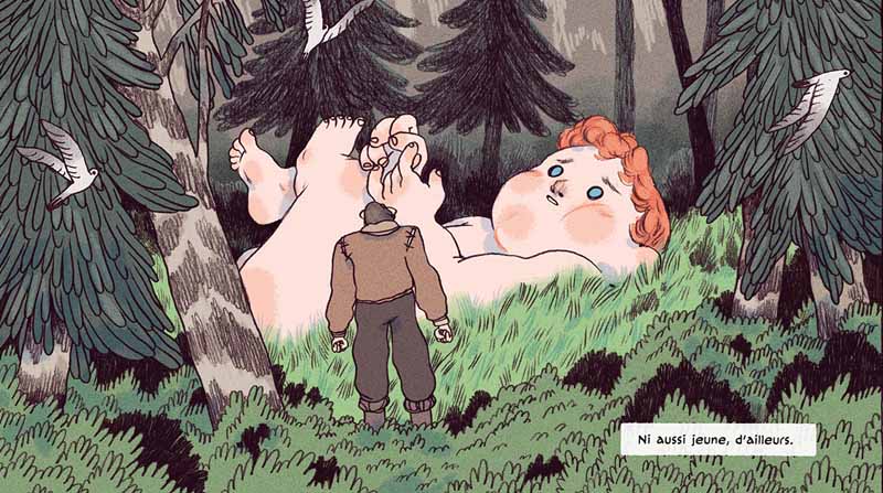 C’est une BD tout à fait unique que nous proposent ici ses auteurs. Un véritable conte avec quelques ingrédients classiques (notamment la géante qui évoque Gargantua ou le Petit Poucet à travers son enfance) qui nous replongent dans les délices de l’enfance, doublé d’une quête initiatique, avec pour personnage principal une géante (gentille, très gentille) dénommée Céleste, qui fera son apprentissage de la liberté en parcourant mille contrées imaginaires. L’histoire se rapproche ainsi du récit picaresque, incluant moult rebondissements et une pincée de romance, car la jeune femme, par son intelligence et sa féminité, si imposante soit-elle, saura toucher le cœur des hommes qu’elle croisera sur sa route. Le propos est bien dans l’air du temps, axé sur un nouveau féminisme qui rejette tout extrémisme. Avec pour preuve le chapitre de l’île aux sirènes, où un groupe de femmes maintient quelques hommes captifs pour être certaines de conserver sa liberté, tout en les utilisant comme simples reproducteurs. Au grand dam de Céleste qui les aidera à fuir.