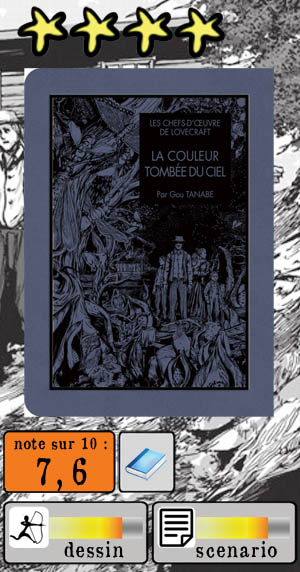 Rares sont les œuvres de Howard Phillips Lovecraft, illustre pionnier de genre fantastique, qui ont bénéficié d’une adaptation réussie dans le neuvième art. En ce qui concerne l’auteur japonais Gou Tanabe, qui, avec La Couleur tombée du ciel, en est à sa troisième adaptation, on peut affirmer sans se tromper que son travail est à la hauteur de celui de l’écrivain américain. Respectant fidèlement la narration d’origine, Tanabe rend un hommage digne de ce nom à l’auteur du mythe de Cthulhu.