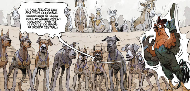 Avec ce premier volet, c’est une véritable fable politique — accessoirement animalière — qui se dessine, dans l’esprit de Jean de la Fontaine, à laquelle la formule de ce dernier correspond on ne peut mieux : « Selon que vous serez puissants ou misérables, les jugements de cour vous rendent blanc ou noir ». Et déjà à son époque, le fabuliste avait bien compris la puissance de l’humour contre le tyrannie… Prévu en quatre tomes, Le Château des animaux s’avère une série plutôt prometteuse qui pourrait faire date.