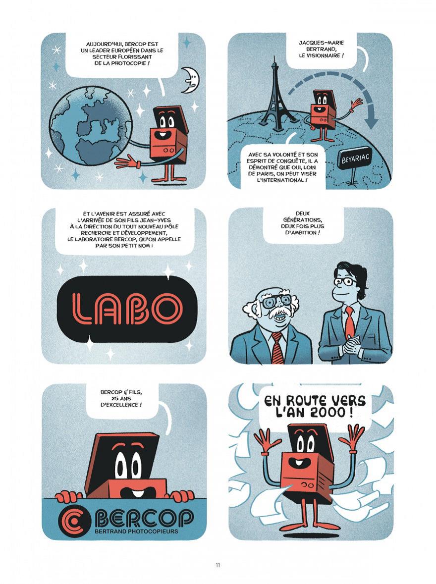 Dans le prélude à l’histoire, nous voyons un jeune couple de Parisiens à la recherche d’un endroit paisible en province, afin d’y accueillir une structure de co-working « dédié aux start-ups 3.0 ». En visitant une propriété inoccupée, siège d’un ancien fabricant de photocopieuses, autrefois la plus grosse entreprise de ce coin perdu de Charente, ils découvriront une ruine intrigante au design typiquement seventies. Cette ruine, c’est celle du Labo, une base de recherche et développement en informatique initiée par le fils du patron qui connaîtra son heure de gloire dans les années 70… Sa sœur Nicole, chargée de négocier la vente, veut se débarrasser au plus vite de la propriété, qui lui rappelle surtout de mauvais souvenirs. Pourtant, devant l’enthousiasme des visiteurs, la dame sexagénaire va narrer la saga de ce Labo « où la technologie se mêle à la folie la plus pure », et dont elle prétend être la dernière survivante.