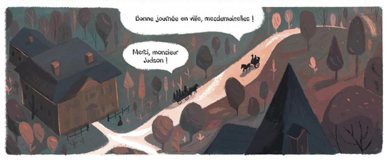 En choisissant de collaborer avec Lupano pour ce one-shot, Stéphane Fert met entre parenthèse le conte de fées, genre avec lequel il a su si bien nous enchanter. Pourtant, il ne renonce pas totalement à cette part de merveilleux en mêlant à l’histoire les ingrédients les plus typiques des contes : la forêt, la sorcellerie, et les messes noires, sans vouloir faire de mauvais jeu de mots… Et ça fonctionne car en plus cet univers sylvestre, par le choix des couleurs, fournit un contraste fort avec la bourgade avoisinant l’école de Miss Crandall. La forêt, comme une invitation au rêve, chatoie de couleurs vives tandis que Canterbury et ses habitants se confondent dans une grisaille peu engageante. Bien sûr, si l’on parle de sorcellerie, ce n’est pas de la sorcellerie au sens propre du terme, mais une sorcellerie de femmes, noires, en réaction à un pouvoir patriarcal raciste et oppressant. Ainsi, ces femmes n’ont d’autre choix que de se défendre dans une sorte d’union sacrée. La suite du récit montre d’ailleurs qu’une véritable chasse aux sorcières va s’opérer contre ces pionnières qui effraient les habitants de Canterbury, tous blancs, davantage par leur souci de s’élever que de par une remise en cause potentielle de leur entre-soi. Ce qu’ils veulent, c’est rester entre Blancs pour se convaincre sans doute qu’ils sont et resteront pour toujours la « race supérieure » et pour cela ils préfèrent l’affrontement et la violence qu’un compromis civilisé. L’un d’entre eux l’affirme : « Je préfère les nègres qui rejettent notre société à ceux qui cherchent à s’y glisser par tous les moyens. »