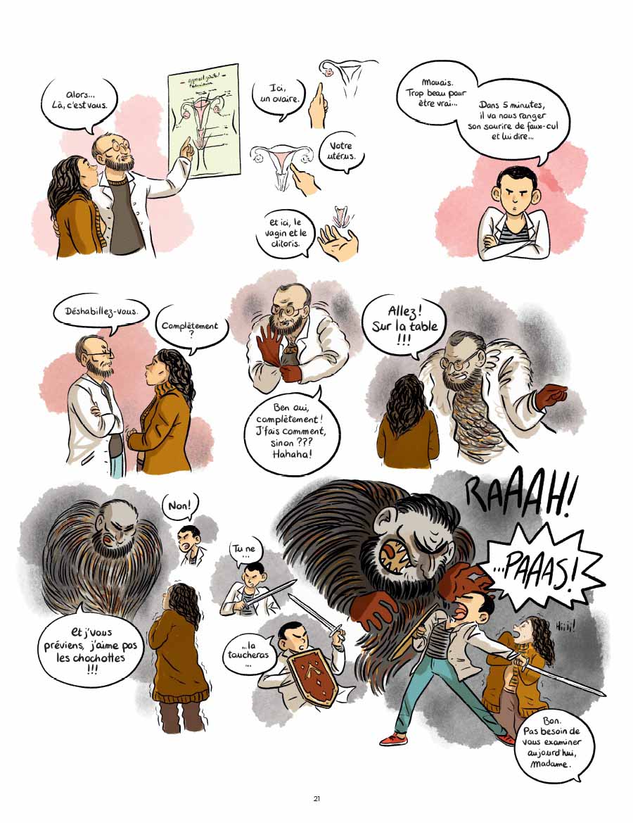 Docteur Karma — Je ne me contente pas de jouer au docteur !!! Pas comme ces soi-disant professionnels de santé qui reçoivent les patientes de manière autoritaire et méprisante ! Un soignant, ça ne doit pas se comporter comme un juge ou un flic ! Vous voulez être quel genre de médecin, vous ? Une soignante ou un flic ?