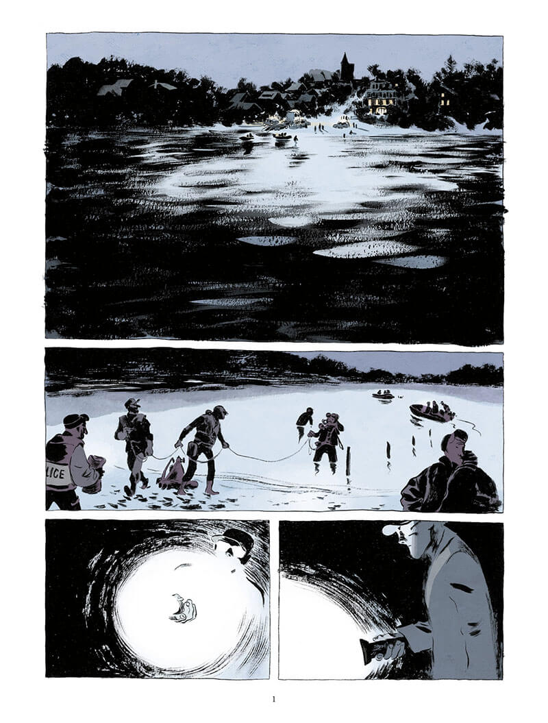 Empreint de poésie majestueuse, le dessin de Risbjerg magnifie comme toujours l’histoire par ses ambiances nocturnes et, fort logiquement dans le cas présent, brumeuses à souhait.