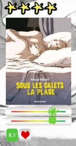 Ce thriller social très fluide, qui ressuscite les fantômes de mai 68, se révèle assez puissant sous son apparente légèreté. Sous les galets la plage, c’est l’histoire d’une révolte d’une génération sur la précédente, sur les trompe-l’œil de la filiation inaltérable et les carcans du patrimoine transmissible, qui nous questionne de façon assez subversive : et si les enfants ingrats avaient raison ? C’est aussi le récit d’une revanche jouissive des « gueux » aux allures de robin des bois sur les parvenus vaniteux. Sans abus de textes explicatifs et d’effets de manche, Pascal Rabaté en profite également pour livrer une attaque cinglante contre les mâles défenseurs d’une France blanche et patriote, nostalgique du « bon temps des colonies », tout cela grâce à une galerie de portraits finement élaborés et des dialogues ciselés. La conclusion est juste formidable, avec cet irrésistible pied de nez dévoilé sur la dernière image par ce fieffé gredin de Rabaté, qui ne peut pas vraiment dissimuler ses sympathies anars !