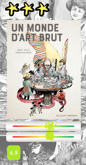 Un monde d’art brut n’est pas pour autant à jeter aux orties et possède même un potentiel de séduction — soulignons que l’annexe en fin d’ouvrage présentant une sélection d’œuvres donne une valeur ajoutée à l’objet —, mais ce manque d’unité échoue donc à en faire un ouvrage marquant, malgré la sincérité que l’on perçoit chez ses auteurs. Pour mieux découvrir l’art brut à travers le neuvième art, on privilégiera largement la lecture de l’excellent Enferme-moi si tu peux d’Anne-Caroline Pandolfo et Terkel Risbjerg.
