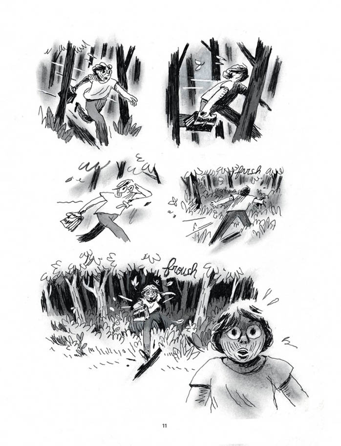 Le récit est structuré par deux trames narratives parallèles, l’une en couleur où l’on voit notre héros évoluer à travers un déluge de bagarres et d’explosions, l’autre en noir et blanc pour représenter le quotidien un peu terne de Francis et de Claire. Le trait de Loïc Guyon reste assez sommaire dans sa mise en page très libre, ce qui convient plutôt bien au rythme passablement échevelé de la narration.
