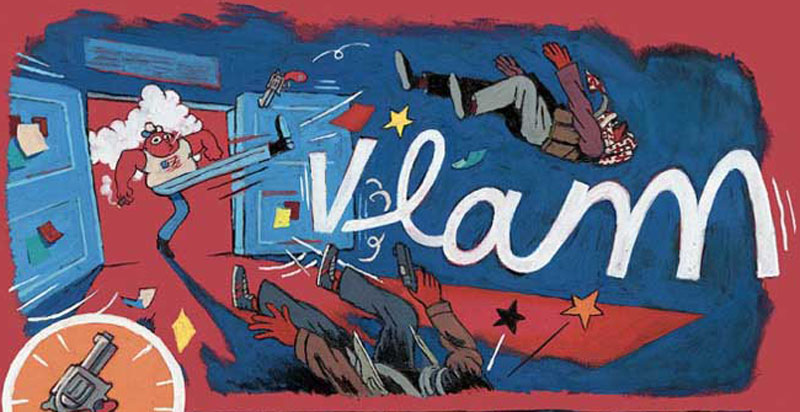 Jouant sur ce contraste entre les clichés hollywoodiens et la réalité ordinaire d’un jeune couple provincial, les deux trames vont se rejoindre de façon inattendue, ne faisant que renforcer la folie obsessionnelle de Francis, car en plus il en est sûr, on s’arrachera bientôt son talent d’écrivain ! Son héros absolu, qui a pour mission d’escorter une mystérieuse sacoche que la Terre entière (bandits mexicains, communistes, nazis, terroristes et j’en passe….) semble vouloir s’approprier, finira par confier l’objet convoité à son fan number one ! On ne sait pas vraiment lequel des deux, du héros ou du fan, est passé de l’autre côté du miroir, ou plus exactement de la lucarne télévisuelle, mais c’est à partir de là que la vie du jeune homme va basculer dans une spirale morbide de paranoïa aigüe… avec une conclusion au récit en forme de mise en abyme. Et là, on ne pourra s’empêcher d’y voir une part autobiographique où l’auteur épingle de façon très sarcastique le statut d’auteur et les logiques éditoriales.