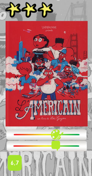 On ne saura reprocher à son auteur cette structure scénaristique pour le moins originale, mais on pourra regretter les quelques longueurs et digressions inutiles que les séquences les plus rythmées ne suffisent pas à alléger. L’Américain, au-delà du pastiche, c’est un peu l’histoire d’un petit garçon qui n’a pas su grandir, ou plutôt qui s’est accroché à un mythe de son enfance, celui, illusoire, d’une Amérique des grands espaces et des héros libres où seul « le ciel est la limite ». Mais quand la réalité rappelle à l’ordre, plus dur est l’atterrissage, surtout quand le rêve américain vous a boudé… Sans être l’album de l’année, cet OVNI un brin alternatif reste digne d’intérêt par son audace. C’est sans doute pour cette raison qu’il est en sélection officielle pour le Festival d’Angoulême.