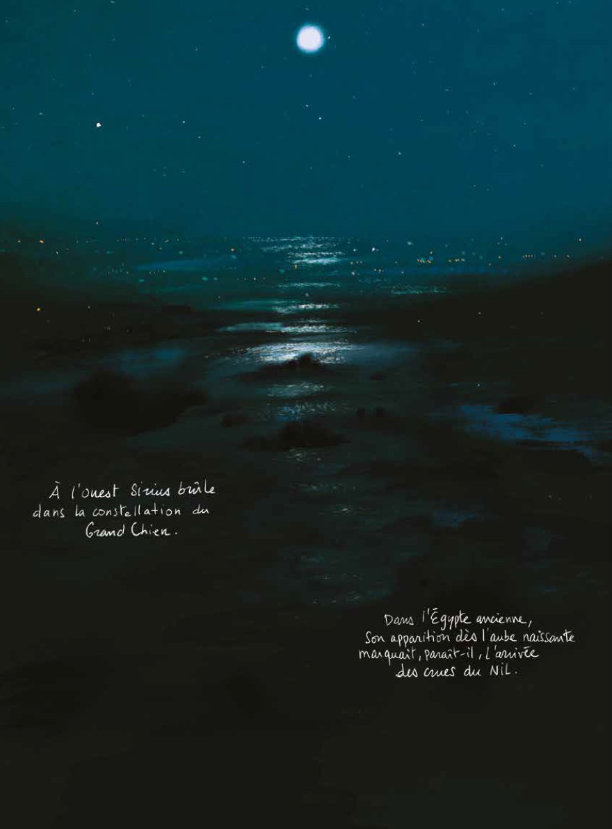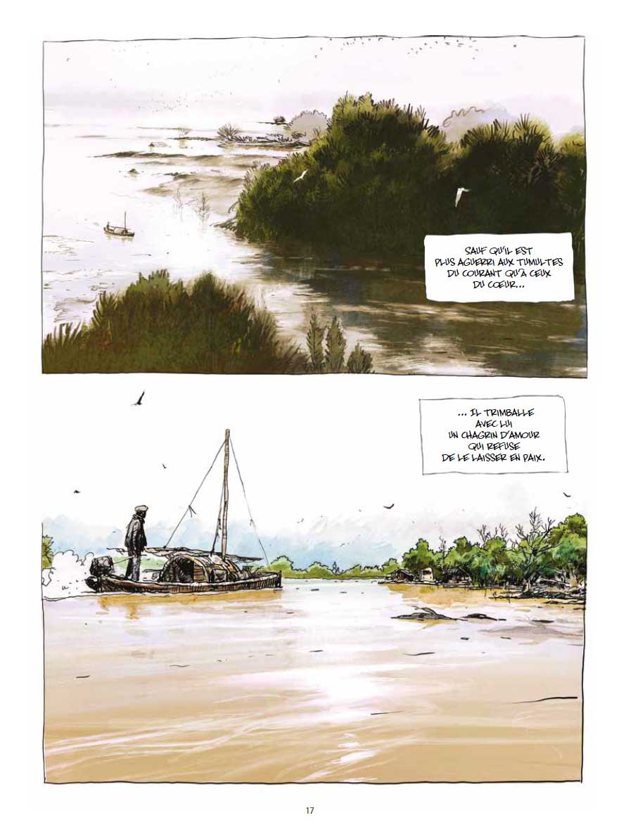 « La nuit se remplit d’une joie secrète. Tout le profond du bois s’anime d’un puissant chahut. Un vent doux amène des parfums sauvages d’eau et de mystère. J’écoute son sang battre. Demain, nous partons glisser dans les bras gigantesques du fleuve.