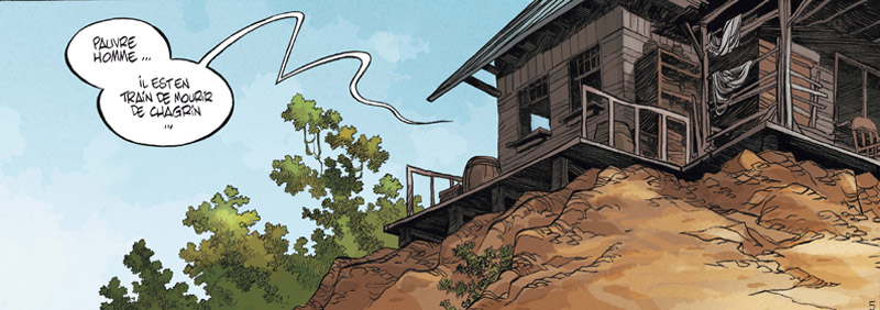 La rencontre avec ce « putain de salopard » a finalement eu lieu… Le fameux Manchot a donc annoncé à Max qu’il était son fils après s’être pris une balle dans la jambe par les hommes d’Hermann. Et pourtant, quelques minutes auparavant, il s’apprêtait à trucider sans états d’âme le fiston, qui venait de récupérer le trésor caché dans l’épave de l’avion perché dans les arbres… L’arrivée des hommes d’Hermann ne lui en aura heureusement pas laissé le temps… Il faut bien le dire, une enflure pareille, ça laisse sans voix, justifiant pleinement le titre de la série.