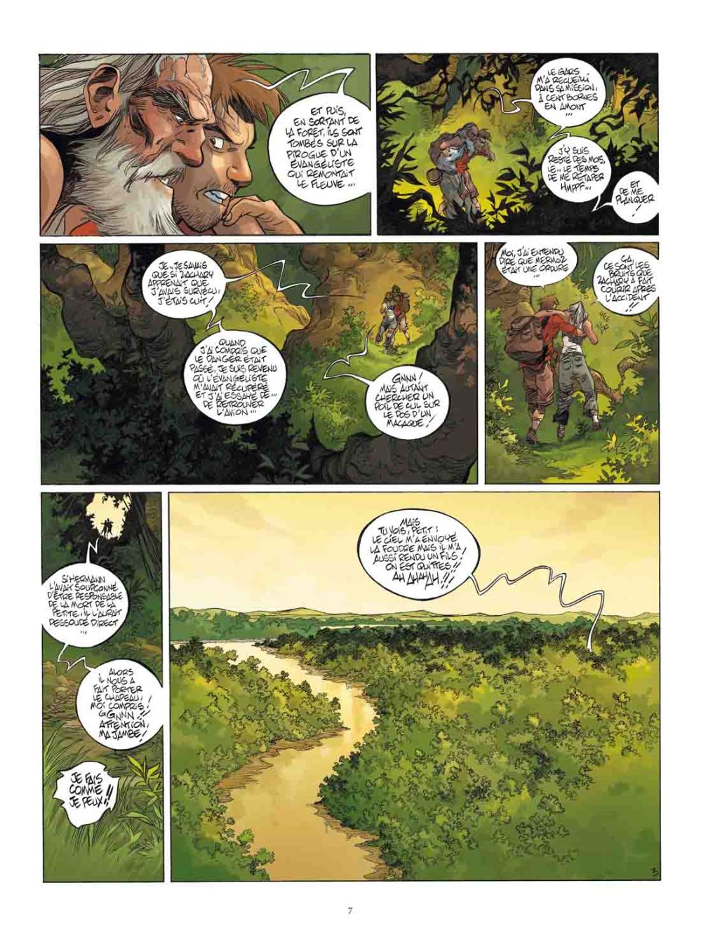 A la fin du tome précédent, nous avions laissé Max et le Manchot en pleine jungle, en mauvaise posture, alors qu’ils venaient tout juste de retrouver l’épave de l’avion contenant un trésor. S’apprêtant à quitter les lieux, ils tombèrent nez à nez avec des hommes envoyés par Hermann, le patron du camp forestier, à la recherche de Max. S’ensuivit une fusillade où le Manchot les élimina un par un mais s’en sortit avec une blessure à la jambe. Avant de s’évanouir, il eut juste le temps d’annoncer à Max qu’il était son géniteur… Pendant ce temps, Baïa, qui, très méfiante vis-à-vis du Manchot, avait préféré s’enfuir en dérobant la barque de ce dernier, a rebroussé chemin pour tenter de rejoindre Max. Alertée par une vision de sa mère, elle a réalisé que le Manchot était un homme très dangereux…