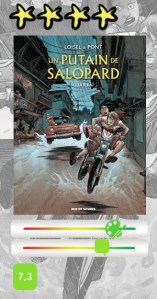 Côté dessin, rien à redire, Olivier Pont remplit sa mission avec brio, avec un sens du cadrage accompli. La scène finale de la course-poursuite entre Max et son père est impressionnante par le sentiment d’immersion qu’elle procure au lecteur, lequel se retrouve littéralement sur le siège de la moto du jeune héros. Quant aux passages plus contemplatifs, moins présents ici, ils sont superbes. On ne peut s’empêcher d’évoquer la scène nocturne de la page 51 où plusieurs des protagonistes, à des endroits différents, sont représentés en plein sommeil, avec (presque) à chaque case la présence apaisante de la lune sur un magnifique ciel étoilé… Le travail parfaitement maîtrisé de François Lapierre sur les couleurs y est assurément pour quelque chose.