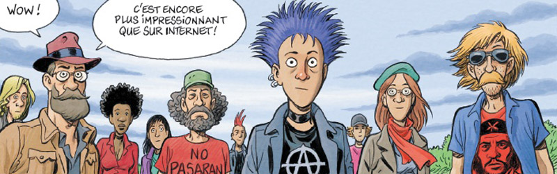Il vaut parfois mieux s’abstenir de tout jugement hâtif. Sous des dehors de comédie jeunesse humoristique, dans la pure veine traditionnelle du genre franco-belge, cette bande dessinée au format classique de 64 pages est plus moderne qu’il n’y paraît. Sous les gags aux airs de déjà-vu, derrière les situations improbables et souvent caricaturales, Jamais : le jour J est bien en phase avec son époque.